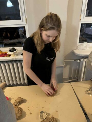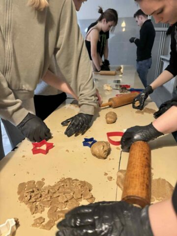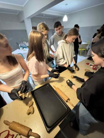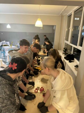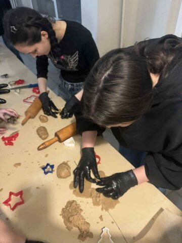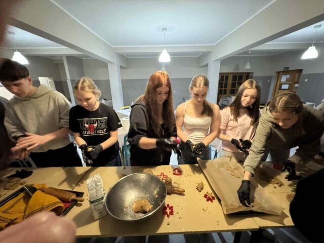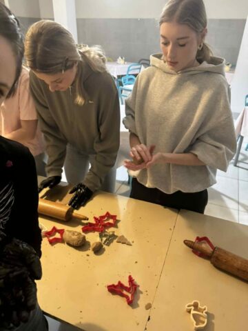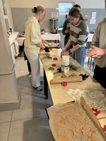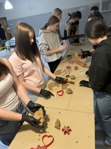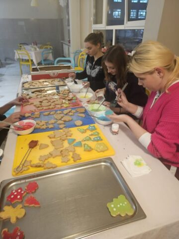 Wspólne pieczenie pierników w naszej bursie cieszy się długą tradycją – mieszkańcy wraz z wychowawcami przygotowują łakocie od wyrabiania ciasta aż do finezyjnego ozdabiania wypieków. Chętnych do wałkowania i wykrawania nie brakowało. Zapach pierników roznosił się po całej bursie. Lukrowanie pierników też przyniosło wiele radości wychowankom.